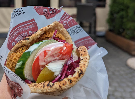 This, however, is definitely the real deal. At the time I visited, the place was run by a Syrian and an Egyptian who were extremely welcoming, kind and warm to me and my family (including very young children). It's a place with a simple yet charming vibe. Most importantly, though, the falafel was crisp, the pita bread was exceptionally soft and warm, and the Arab style pickle was some of the best I've ever had without any exaggeration. It's not the biggest sandwich, but for €6 you really can't complain.