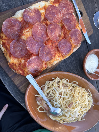 All of the ingredients are high quality, but the food seriously lacked flavor. The carbonara was bland, not enough cheese, and the guanciale wasn’t cooked enough so there was a lot of chewy fat. The pinsa with salami was good, but again, kind of bland.