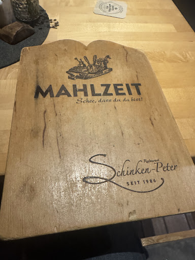 To top it off, upon paying the check out waiter inquired about why we were in Munich. We told him it was a belated honeymoon and he wouldn't let us leave without giving us a kind gift of a Schinken-Peter bottle of champagne and chocolates. If you're in Munich, take the train, take a taxi, do what you need to do to get here... But make reservations first! Mit alles Leibe...