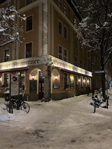 We visited here Thursday 8th October 2020. It's a smaller than some of the big beer halls in town, however it's still a reasonable sized place that occupies a corner plot where Daiserstrasse and Alramstrasse meet. If you were in the centre *btw let's consider the centre as Marianplatz, then it's about 50 minutes by foot or 23 minutes and 4 stops on the U3/U6 get off at Implerstrasse and it's a 400-500metre walk from there. It's an Augustiner place so the beer is decent in particular I would recommend the Edelstoff. It's a nice looking building from the outside, it was dark when we visited but it looked a peachy colour with Augustiner livery.
