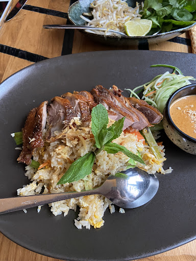 Good things about this place: very good location beautiful interior design the food is superb. We ordered salmon tartare, crispy duck fried rice and beef noodle soup. Everything tastes amazing. In fact, it was the best fried rice I‘ve ever tasted in Germany (and I‘m from Indonesia, so I eat A LOT of authentic fried rice, but this one tops it all)