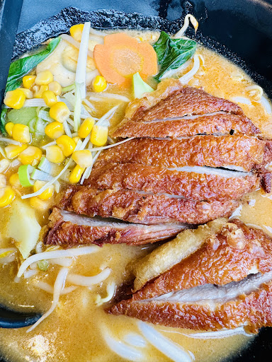Read many good reviews at this noodle bar. So decided to have lunch. Indeed without disappointment, the food we ordered were delicious. We had the crispy duck noodle. So much flavour and the duck meat was juicy and tender with excellent crispy skin. Also the stew pork comes with some vege, half hard boiled egg and rice. The taste of the stew pork reminds me of my wife home cooked. Both dishes were excellent. At the end of the meal, we were surprised with an ice-cream each. So good and a good way to complete our meal. Total meal spend with 2 drinks €36.80.
