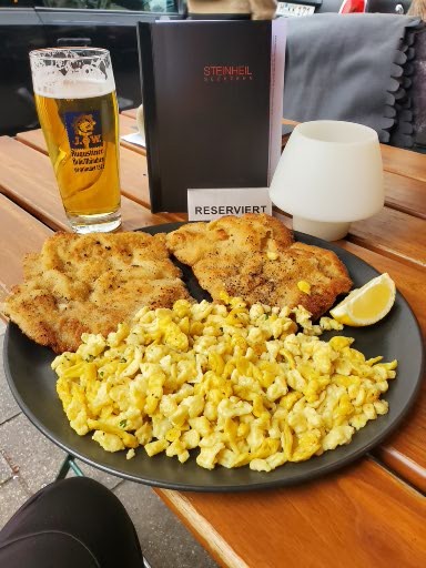 Me and my husband booked this table weeks ahead as it was our wedding anniversary week and we were in Munich for a short trip. We live in Vienna, Austria so we know fairly well how a schnitzel should be like and taste, since we ate one of the best ones in Vienna and often from different places. We came here as many articles said this place had the best one in Munich. The place was packed and even with reservation we still waited around 15 minutes to be seated as this place was a tavern/pub type as we call in Romania (terasฤ) place was packed with walkins. Staff was ok but we were asked by 3 different staff members about our reservation. We waited 40 minutes for the schnitzel (same wait time as for a Paella) when the dish came by what a disappointment we got! I had a first chew out of my vegetarian schnitzeland I couldn't even cut it, when I tasted it I felt it very burnt, like I was eating cardboard burnt. When I turn around the 2 pieces had almost black color, the food was inedible and I was raged how they tried to hide it by turning them over. I had vegetarian schnitzel in vienna and was the best, and different from this one, this schnitzel was just Soy that we use in Romania to put in water and feed it to sick people in hospital. As you can see from 1st pic I left everything in the plate and nobody even questioned why I didn't touch the horrible plate. My husband had the classic schnitzel and he also said that it is not even close to those in Vienna. We paid the bill and gave tip to water since it was not their fault but the management of the place. We left and had better food elsewhere that night. Do not recommend this place unless you want...