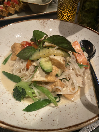 She had sushi which was very good - I left the Pad Thai - picture a low bowl of 'Tom Kai gai' with noodles, 6 prawns and no spices. No sauce - Soup! For 23€ I'm happy to pay prices for good food - this just wasn't it!