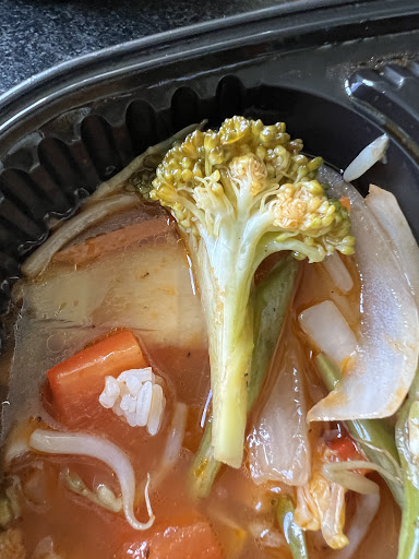 Die Suppe war heiß, aber das war auch das einzig gute daran. Gerochen hat sie total neutral, da mit so wenig Kräutern gefüllt und mit glasklarer Brühe aufgegossen. Das (nennen wir es mal) Rindfleisch, war nicht genießbar und bin mir nicht sicher ob es nicht fertig aufgeschnitten gekauft wurde. Es sah aus wie kalter dünn aufgeschnittener Braten, aber leider nicht vom Vortag... bin wirklich ziemlich Schmerzfrei und hätte das bei guter Brühe und leckeren Kräutern noch akzeptiert. Die Nudeln waren leider einfach nur ein lieblos reingeklatschter Haufen, welcher sich auch nicht von dem heißen Wasser trennen ließ. Vermute diese waren heiß gekocht worden und sind in der Schüssel abgekühlt, bevor sie mit dem Wasser übergossen wurden. Leider nicht mal mit einer sehr hohen Toleranz essbar. Fehlende Aromen und selbstverständliche Zugaben erwähne ich nicht mehr.