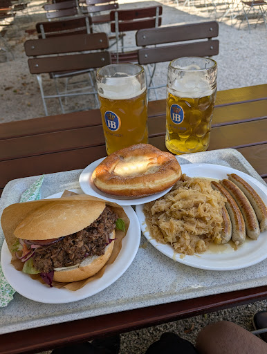 I got a liter of Radler and my husband got a liter of their Russ beer. Everything was delicious and fairly priced. There is also a bathroom there, don't forget to tip the bathroom attendant a few euro coins. Everyone was very friendly, I think they could tell we were tourists.