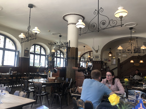 We read that it’s usually much busier, we came a day after Christmas so I think because of that it was not crowded. The moment we came in we were seated, unfortunately not at a very good place even if there were maybe three other tables taken and every other table was free. They sat us at the table for two at a bad location, it was cold and next to the cash register only so we wouldn’t take up place for more people (the whole time we were there the most of the tables were free). The waiter wasn’t very kind and also didn’t know english very well. We ordered baked cow schnitzel (9/10), bavarian straw pork meat loaf (6/10) and apple pie (10/10). Schnitzels were good, bus in the sos there was a hair, I asked for a new one which the waiter didn’t say a word to, took it out of my hand, looked and left. I got a new one a few minutes later form the other waiter. For our taste the meat loaf was not so awesome. In the other hand, the apple pie was amazing as well as the beer. Tissues that are on the table were dirty and the toilet was not very clean. Our total bill was 54€. In conclusion, if you have nowhere to eat go there, but I wouldn’t recommend it.