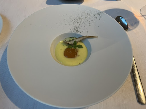 Read moreThis is the second time I have been here and must admit the experience was much better. It’s a gorgeous restaurant located on the top floor of the BMW Welt. Tall ceilings, well separated tables, lush rugs and a fireplace make for a very cosy and romantic ambience. Excellent table settings with nice cutlery. The long handled forks and knives take a bit of getting used to and they are not very practical.