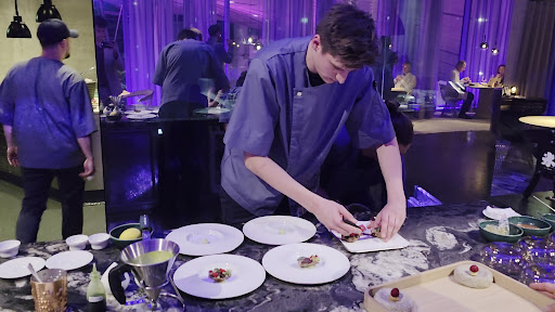 Read moreDer Eröffnungsabend im The Cloud by Käfer war ein außergewöhnliches Erlebnis, das selbst für erfahrene Fine-Dining-Liebhaber und Kenner der internationalen Spitzengastronomie neue Maßstäbe setzt. Schon beim Betreten des Restaurants wird klar, dass man hier nicht einfach essen geht – man begibt sich auf eine durchkomponierte Reise für alle Sinne. Das Lichtkonzept taucht den Raum in atmosphärische Farbtönen, die gemeinsam mit wolkenartigen Installationen an der Decke eine fast surreale Leichtigkeit erzeugen. Die großzügige Architektur mit hohen Decken, eleganten Vorhängen und einer wohldurchdachten Möblierung schafft ein Umfeld, das zugleich stilvoll, modern und dennoch einladend und entspannt wirkt.