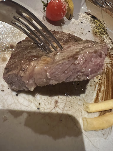 Already when we entered we didn’t seem to be noticed, when they brought us to the table (half full restaurant on a Saturday eve? This should have been a sign to leave). We ordered a nice glass of wine, my partner 0.1 and myself 0.2, which hardly had a difference between the two glasses, except the price 6 vs 12 euro. We only ordered 2 steaks as we felt only a bit hungry… well I can say….. I can’t remember if I ever had such a bad gummy steak (not medium rare at all as I ordered). Probably a problem of putting cold meat on the grill? Check the Brenner restaurant (same chain/owner) they serve their meat perfectly. You would have known if you will ask your guest how the food is, but as you can guess, didn’t happen.