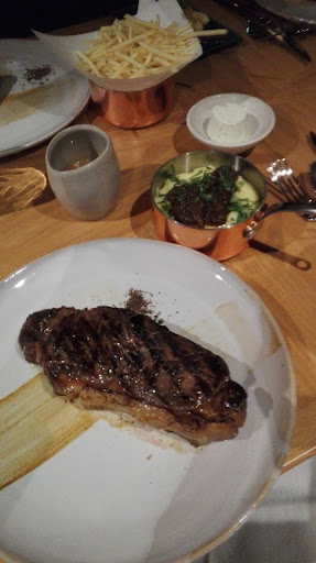 Read moreIch hatte die Gelegenheit, am 10.04.19 abends im neu eröffneten „The LOUIS Grillroom“ im Hotel Louis am Viktualienmarkt zu speisen. Ich war schon gespannt, wie das umgestaltete frühere Restaurant EMIKO nach dem Umbau aussieht und mit welchen kulinarischen Überraschungen man die Gäste überraschen will. Zuerst zum Interieur: Der „Grillroom“ ist nun vom Hotel besser abgetrennt. Das Design von Hotel und Grillroom geht harmonisch Hand in Hand. Man spürt die hohe Qualität der Einrichtung und des Mobiliars an vielen Details, wobei eine klare, warm und natürlich wirkende Linie ohne Überfrachtung oder unnötige Accessoires herrscht. Das Beleuchtungskonzept ist darauf ausgerichtet, durch passende dämpfende oder betonende Leuchten für die Gäste eine ruhige und private Atmosphäre zu erzeugen. Man sitzt sehr bequem und hat genügend Platz zum Nachbarstuhl und auch -tisch. Zum Service: Das Personal ist sehr aufmerksam und versteht es dem Gast das Gefühl zu geben, dass es sich um ihn kümmert, ohne aufdringlich zu wirken. Die unweigerlich aufkommenden Fragen zu Speisen und Getränken werden kompetent beantwortet und entsprechende Empfehlungen gegeben. Zum Essen: Die Karte vermittelt den Eindruck eines durchgängigen Konzeptes, die jeweils angebotenen verschiedenen Fleischspezialitäten - worauf ja eindeutig der Fokus liegt - durch entsprechende Vorspeisen und Beilagen geschmacklich zu unterstützen und zu heben. Meine Wahl fiel als Vorspeise auf grünen Spargel vom Grill mit rotem Quinoa, Passionsfrucht und Karotte, als Hauptspeise auf ein Stück Strip Loin (280 g) des aktuellen beworbenen Fleischveredlers John Stone (medium), als Beilage wählte ich Bio-Kartoffelpüree mit Teriyaki-Pulled Beef. Geschmack und Textur der Zutaten der Vorspeise, deren Kombination ich als gegensätzlich empfand, was meine Neugier weckte, war in Biss, Säure und Süße überraschend harmonisch, die verwendete Sauce und Gewürze unterstützten die Noten von Gemüse und Frucht gut. Der grüne Spargel war genügend aber nicht über Gebühr gegrillt und hatte trotz des Garzustandes noch genügend Biss. Die Karotten waren blattartig gehobelt, frisch und knackig. Das dann folgende Fleischstück war schon optisch mit seinem schönen Grill-Lock ein Hingucker, die ausreichende Größe und Dicke vermittelt den Eindruck, davon schon gut satt werden zu können. Beim Anschneiden wurde ich vom gewünschten hellrosa Kern ummantelt von nicht zu sehr gegartem Fleisch begrüßt, der Saft wurde vom Fleisch überwiegend gehalten und floss nicht gleich im Übermaß aus. Geschmack und Geruch des bissfesten und dennoch weichen Rindfleischs waren in allen Noten dem Ideal nahe. Würzsauce und neben dem Fleisch auf dem Teller platziertes Pfeffer und Salz ermöglichte es, nach Gusto verschiedene Würz-Kombinationen auszuprobieren. Es brauchte dann doch seine Zeit, Fleisch und Beilage zu verzehren, die übrigens hervorragend schmeckte. Der leicht rauchige Geschmack des sehr weichen und würzigen Teriyaki-Pulled Beef passte hervorragend zum darunter platzierten Kartoffelpüree, alles zusammen wurde in einem Kupferkännchen serviert und blieb schön warm. Da ich kein besonderer Weinkenner bin und im allgemeinen Bier bevorzuge, werde ich auf meine Getränkewahl hier nicht extra eingehen, nur so viel: Es war gut gekühlt und schmeckte zum Essen! Nur die gereichte Gebindegröße (0,25 l) war etwas gewöhnungsbedürftig… Zur Nachspeise gönnte ich mir noch eine Apfeltarte mit Eis, beides war genauso gut wie die Gänge zuvor (nur war ich schon so voll, dass ich mich damit etwas schwer tat …). Die Preise waren insgesamt nicht gerade niedrig, aber das Essen war etwas Besonderes und dass beides gut über dem Durchschnitt liegt, war mir schon...
