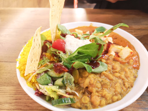 Then I tested “Chickpeas Masala”. It is neither spicy nor sweet, comes with different types of sauces as topping and a smashed lentil kebab inside. The kebab however was tasty. I would score it as a 4.5 out of 10.