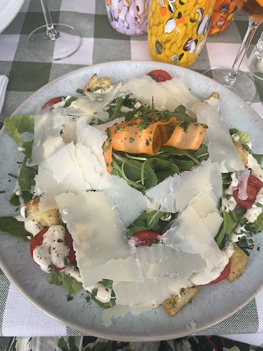 Read moreLeider kann ich hier keine 5 Sterne geben... Zuerst zu den positiven Eindrücken: das Restaurant ist sehr schön und modern eingerichtet, es gibt wundervolle handgearbeitete Murano Wassergläser und auf der Terrasse kann man herrlich sitzen. Gegessen haben wir drei verschiedene Pinsa, die auch wirklich sehr gut waren. Außerdem hatten wir eine Portion Pasta mit Kalbsragout. Geschmacklich war auch das Ragout sehr gut, allerdings konnte man die Fleischstücke an einer Hand abzählen, was wir so nicht erwartet hatten. Zu den Hauptgängen hatten wir noch einen gemischten Salat, nicht spektakulär aber halt ein gemischter Salat. Außerdem hatten wir Tomaten mit Zwiebeln, leider waren die Tomaten nicht wirklich reif, so dass diese Vorspeise eine große Enttäuschung war. Der größte Kritikpunkt ist aber der Service. Laufkundschaft wie wir es waren, werden leider nicht mit viel Aufmerksamkeit bedacht. Leere Gläser wurden nicht abgeräumt, Getränkebestellung wurden unvollständig ausgeführt und um die Rechnung mussten wir dreimal bitten und mindestens 30 Minuten warten. Stammgäste werden mit viel Aufmerksamkeit und Zeit bedacht. Leider kann einem so ein mangelhafter Service den...