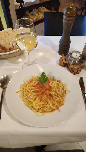 Read moreLeider ein wenig lieblos. Wir haben das Lokal bei einem Spaziergang entdeckt und fanden es supergemütlich. Also gleich reserviert. Wir waren zu Viert und wurden enttäuscht. Nach dem ersten Gang (Carpaccio, Baby-Calamari auf Salat, gegrillter Pecorino mit Honig), haben wir gebeten, dass wir eine halbstündige Pause machen möchten bis der zweite Gang kommt. "Die Pasta ist aber schon fertig" wurde uns beschieden, und kam sofort auf den Tisch, als die Vorspeisen-Teller abgeräumt wurden. Übrigens auch der Fisch. Das mit der Pause hätten wir gleich am Anfang sagen sollen, wird uns gesagt. In einem Lokal mit Anspruch wird man üblicherweise gefragt, ob die Küche schon weitermachen darf. Nun gut. Die sardische Pasta mit Salsiccia und Pecorino waren geschmacklich sehr gut, wenn auch ein wenig wässrig. Die Tagliolini mit Zitronensauce ebenfalls. In Ordnung aber nicht herausragend. Der Flaschenwein war fein, die zwei Gläser offenen Weißwein 10 Euro (jeweils) das Geld nicht wert. Vermisst haben wird die typisch-herzliche italienische Gastfreundschaft. Da wird nicht gefragt, ob das Essen gut war. Geschweige denn ob man eine Kaffee will. Die Mäntel werden beim Eintreffen in die Garderobe gebracht, wenn man geht, wird man sich selbst überlassen. Wir haben zu zweit 182 Euro mit Trinkgeld bezahlt (inklusive einer Flasche Wein) - und müssen leider feststellen: Das Preis-Leistungsverhältnis hinkt....