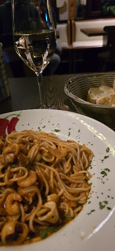 I recently visited Trattoria Pizzeria Italiana near Munich and had an absolutely delightful dining experience. I ordered the spaghetti with seafood (Frutti di Mare) paired with a glass of white wine, and I must say it was exceptional.