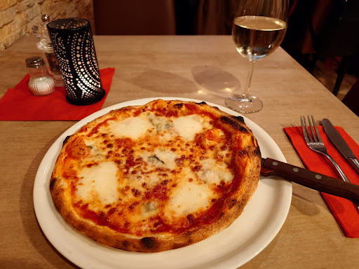 The waiter (owner?) was not happy when two of us ordered one salad, one pizza and two drinks. Unfortunately, he quickly turned rude, scoffing at us. He tried to take one of the two tableware sets from the table. When he delivered the drinks he confirmed our order of one salad, and one pizza. He proceeded to snatch the one plate from the table and walked away muttering. I considered walking away. Food was very good. Salad was properly dressed and the pizza had an...