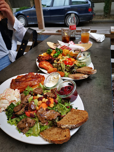 Mia san Dahoam! Very friendly service, with a tasty AND creative vegan dish on the menu. A lot of places have a vegan dish nowadays, but only as an afterthought, so it's usually just some bland, boring version of Pasta Primavera, or the like. We also love the changing indoor decor, too. (This place rocks on all levels.) But since it got a write up in the Süddeutsche Zeitung as a good spot for Birthday Parties, it has gotten super crowded. But that's cool, they are awesome and deserve...