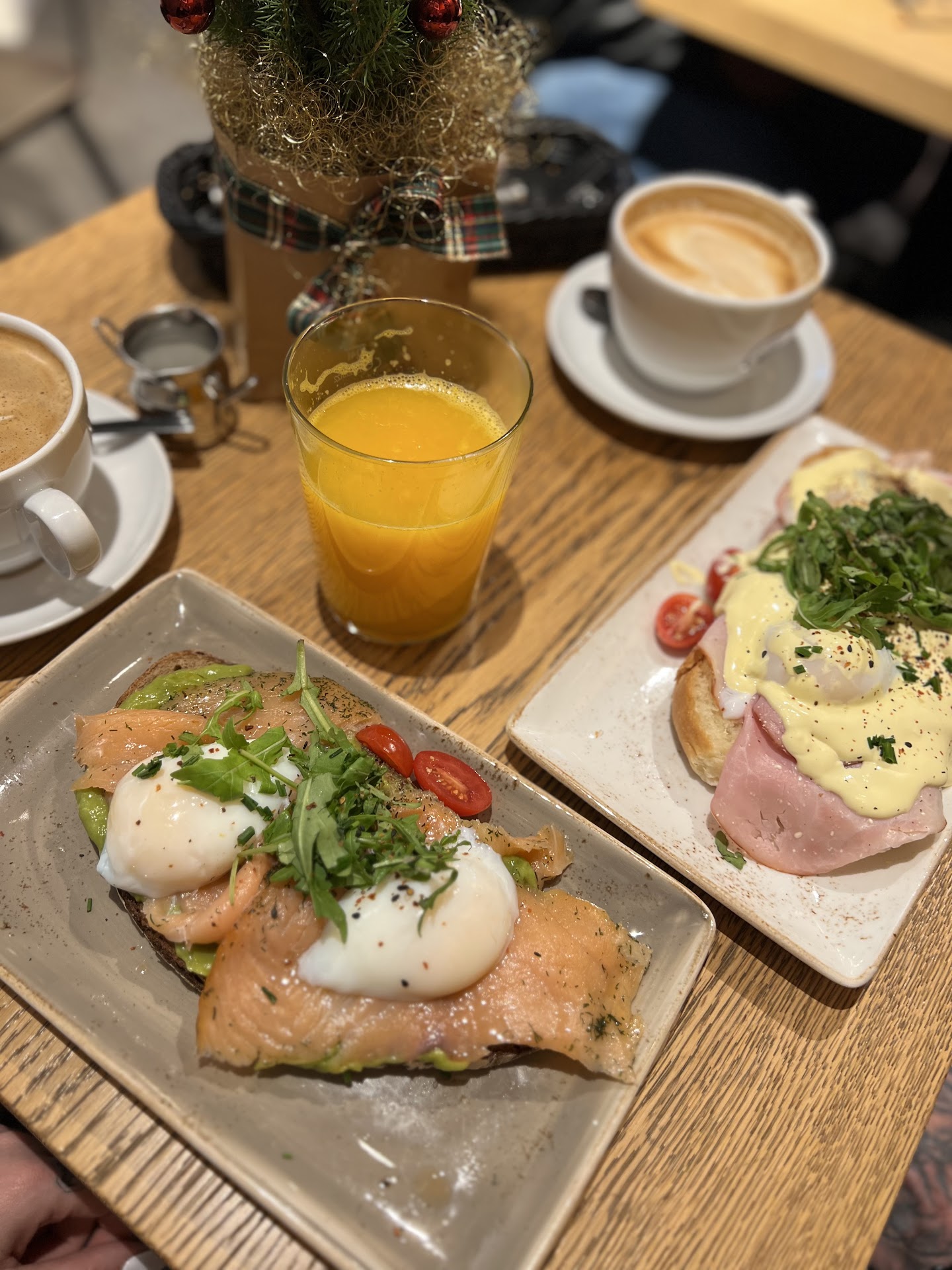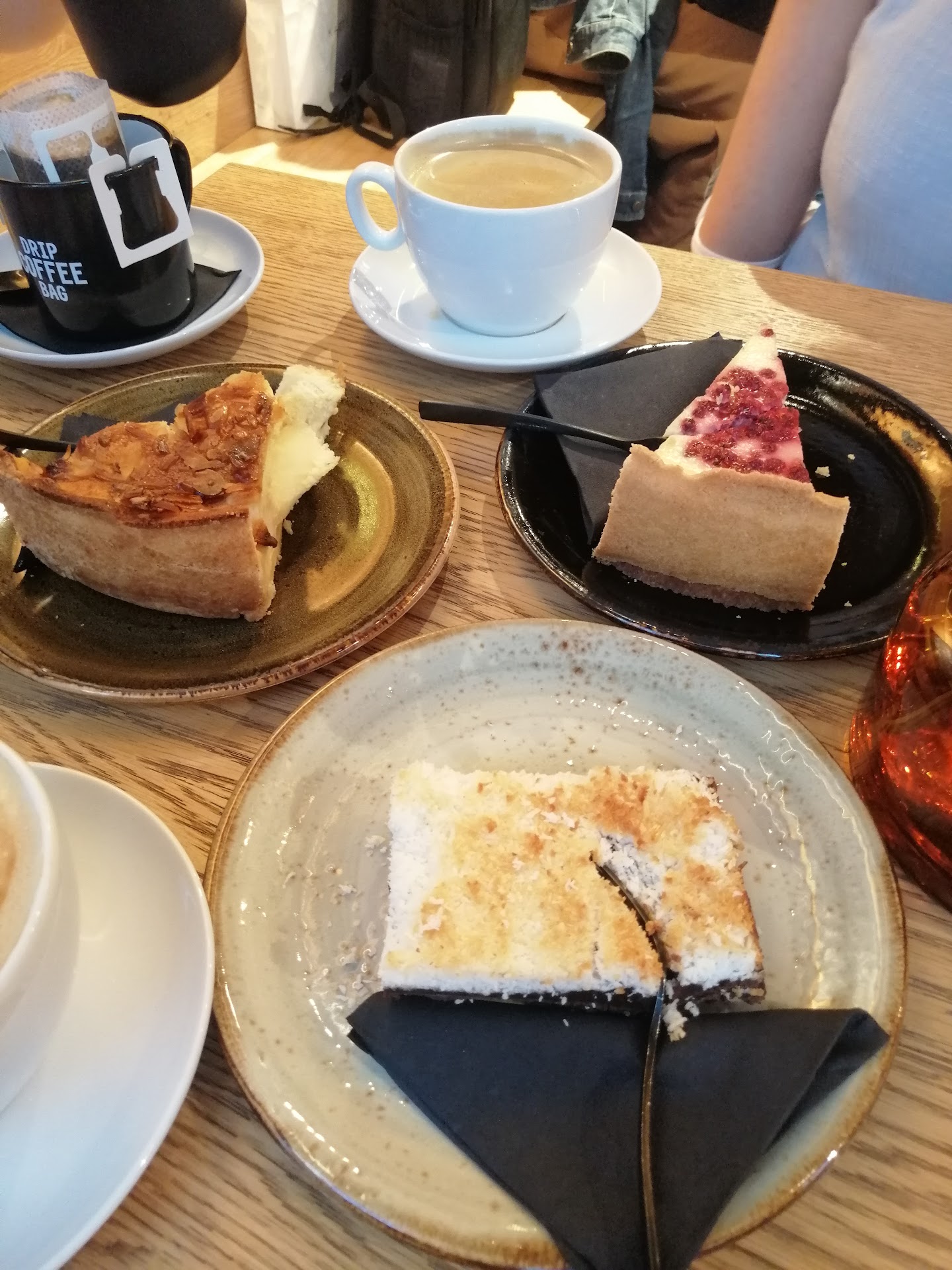 It is a great place! First of all, waiters speak English we had zero problem to order. They asked several times whether everything is alright which is really kind of them. Secondly, I try different cafés in Munich to find the best coffee, currently for Cappuccino they are the best! Also for the cakes, they have really a lot of options. I am not a big fan of German style cakes with fruits but they also have brownies! A nice improvement would be maybe increasing the amount of cakes with chocolate for people who doesn't like too much fruity cakes:). Also, we received a different cake than we ordered and wanted to change it, they changed it without any problem. I specifically state that because I have seen cafes that are popular but not customer friendly at all. This place is the opposite! For teas, they do it fresh instead of tea bags, which is something I don't see a lot in other cafes:) The ambiance of the place is also quite nice, just on the corner with big windows to see around while enjoying nice coffee :) Overall, currently my favorite coffee destination! I was in hurry when I left so I forgot to tip but definitely I will tip double when I visit next time. It is a place that fully deserves with its people. I will also try their food, it was...