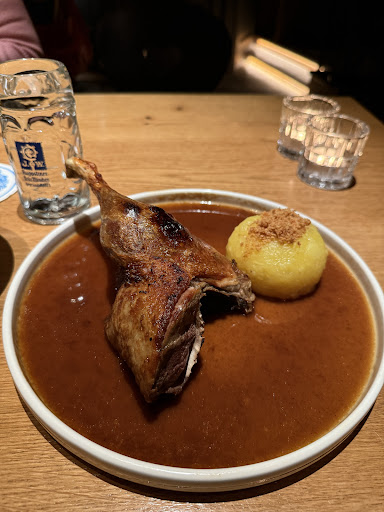 The food was absolutely delicious! We tried the Bavarian Duck and Weinerschnitzel. The duck had a fantastic sauce and a hearty portion with tangy cabbage and riced potatoes. The Schnitzel was light, salty, and had a really great cranberry sauce to dip in for a new flavor.