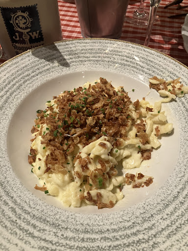 Good day, I had a chance to visit the venue for lunch on 30 December at around 1500-16.00. It was 4 of us. Despite the fact that it was very crowd all around the city and also in restaurant (it was a small place), we get a tabel for 4 persons and it was comfortable enough. The quality of ingredients for each meal (incl hamburger) is definitely worth to mention. We had: Bayerische Käsespatzle, Burger, Cordon Bleu and Zanderfielet. Kasespatzel, if only you are in general not "against" , it is recommended by me. It was creamy and with proper taste of cheese without any extraordinary tuning that is not needed. My friend had a Burger and was also very satisfied with quality of meet and sauce. I had a Cordon Bleu and it was crispy and tasty with side dish being "tomato salad" but here in "2.0" version, with cucumber (pickled and fresh), grated carrot, chivas and sauce with proper balance of vinegar and oil. Fish was fresh and sauce served within was tasty, still light despite cream inside and we think with a bit of saffron. We had local Riesling wine and I took Augustiner Helles, which is the local king and goes with all possible food (including sushi :)).