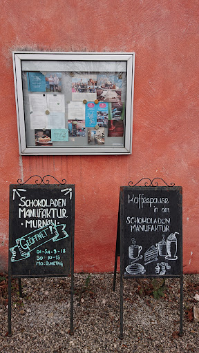 Erster Eindruck ohne zweite Chance. Wir waren auf der Durchreise und besuchten das Cafe wegen der Ankündigung Schokoladenmanufaktur und Kaffeehaus. Beim Betreten war der erste Eindruck noch solala...Wenn man 6 Stunden im Auto gesessen hat, hat man keine Lust weiter zu suchen. Nach 5 Minuten warten an der Theke wurden wir noch nicht einmal gefragt was man für uns tun könnte. Mein Mann hatte sich derweilen schon an einen Tisch gesetzt. Die Einrichtung ist mehr wie in die Jahre gekommen. Es hat den Anschein von schmuddelig und abgenutzt. Und sauber ist etwas ganz anderes. Auf die Nachfrage was denn welcher Kuchen sei ( Sorte ) konnte keine Auskunft gegeben werden. Die sehr junge Dame hinter der Theke wirkte nicht nur unwissend....! Auf die Frage hin welcher Kuchen ohne Nüsse (Allergie) sei konnte auch keine Auskunft gegeben werden.Sie meinte die Pralinentorte...und wusste nicht einmal das Nougat Nüsse enthält. Erst nach einer längeren Zeit war es möglich sich einen Kuchen auszusuchen. Wir hatten uns für eine Sachertorte und eine Johannisbeerbaisertorte entschieden.Die Johannisbeertorte war frisch, aber viel zu süss. Die Sachertorte war alles andere ...nur nicht frisch. Ausserdem wird eine Sachertorte nicht unter der Glasur mit einer Art Buttercreme bestrichen. Das ganze Stück war pappig süss und der Guss war zäh und angetrocknet. Der Kaffee war gut aber auch nicht mehr. Der Preis für alles war durchaus stattlich. 16.40 Euro für 2 Stück Kuchen und 2 Kaffee. Die Bedienung suchte dann noch auffällig lange nach dem Rückgeld, weil von uns kein, stimmt schon, kam.Wenn Preis und Leistung nicht stimmen, kann man auch kein Trinkgeld erwarten. Auch die Theke wirkte unaufgeräumt und unsauber. Das Personal absolut überfordert. Die Toiletten sind und das ohne pingelig zu sein...schon länger nicht mehr geputzt worden. Man könnte schon sagen schmutzig. Das Gefühl drängt sich auf...in diesem Laden stimmt nichts und uns sieht man dort ganz sicher...