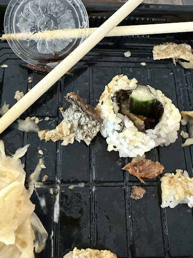 Das Sushi war schon etwas zusammengefallen, sauer und hatte teilweise schon den Ingwer Geschmack angenommen, der mit drin liegt. Das war definitiv nicht mehr frisch.
