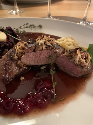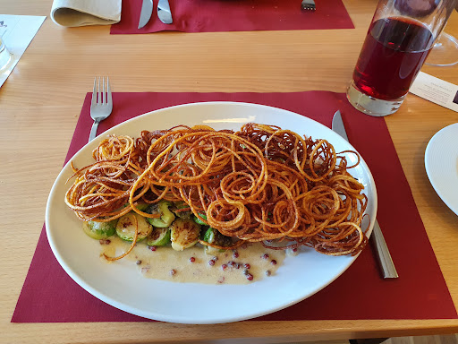 Ich habe eine Gemüselasagne bestellt. Ich dachte mir etwas schönes warmes im Winter. Es kam keine frisch gemachte Lasagne (wie häufig beim Italiener), sondern etwas Aufgewärmtes. Der innere Teil war es dann doch eher kalt. Die Lasagne war ansonsten ganz ok. Also dachte ich mir: geht schon. Das Hühnchen meiner Frau war auch gerade so lauwarm. Gut: ein "Biohuhn" will man vielleicht nicht zu tote garen. Die Nudeln waren aber auch lauwarm. Teller waren auch kaum vorgewärmt. Das hat mich schon an Ausflugslokal erinnert: Vorgekochtes kaum aufgewärmt. Beim Abräumen haben wir darauf hingewiesen, aber keine Rückmeldung mehr erhalten. Die Johannisbeer-Portwein-Panna cotta war eher zuviel des Ideenreichtums. Liest sich toll auf der Karte. Ich hatte den Eindruck, die Zutaten neutralisieren sich gegenseitig. Eine normale Panna cotta schmeckt mir persönlich deutlich besser (gut das ist Geschmackssache) immerhin: die Portion war ordentlich, das Obst dazu war gut. Wenn ich den Preis bedenke, der aufgerufen wird finde ich persönlich 2 Sterne als sehr ausreichend. Für das Geld kann man auch wirklich gut essen. Vielleicht hilft es, wenn man sich vorher erkundigt, welche Gerichte wirklich frisch zubereitet sind und darauf hinweist, dass man schaut, dass die Speisen warm serviert werden. Wir waren fast die einzigen im Lokal. Vielleicht komme ich nochmal im Sommer, wenn man draussen...