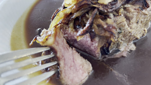 Ordered their traditional German dish, roast beef (but actually just steak), the meat is medium cooked per request, and served with caramelized onions, plus their homemade sauce, very nice.