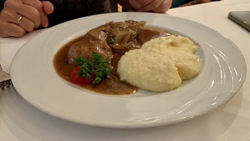 Wir waren mit 9 Personen da, sehr freundliches Personal, leider nur Männer, bis auf die hübsche Frau hinter der Theke. Als Gruß aus der Küche gab es eine kleine Pizza, die Hälfte Art Carpaccio und Margherita, bester Teig ,den ich bisher gegessen habe. Als Vorspeise wurden frische deutsche Steinpilze mit Nudeln angeboten. Haben einige genommen. Ich hatte einen Vorspeisenteller., klein aber fein. Ein Salat nach Hausfrauenart sah sehr gut aus, groß, mit super Thunfisch, nicht aus der Dose, sondern der Feine aus dem Glas. Als Hauptspeise hatte meine Frau Steinbutt gegrillt mit Gemüse und Kartoffeln. Sah gut aus, sie meinte etwas trocken. Ein Freund hatte Kalbsleber, leider etwas kalt. Mein Nachbar hatte Kalbsfilet mit Morcheln und Beilagen. Sah gut aus, etwas klein max. 100 g. Er war zufrieden. Ich hatte Kalbskotelett mit frischen Pfifferlingen und Bratkartoffeln. Große Portion,fein aber total ungewuerzt. Eine Freundin hatte Seeteufel mit Blattspinat und Kartoffeln. Habe den Rest von ihr gegessen, auch das alles ungewuerzt. Wir haben tollen Weißwein getrocknet, Name könnte ich mir leider nicht merken. Könnte ein Sauvignon Blanco gewesen sein. Sehr fein. Wir mussten dann leider gehen, ohne Dessert. Das Lokal war gut besucht alle Tische besetzt.