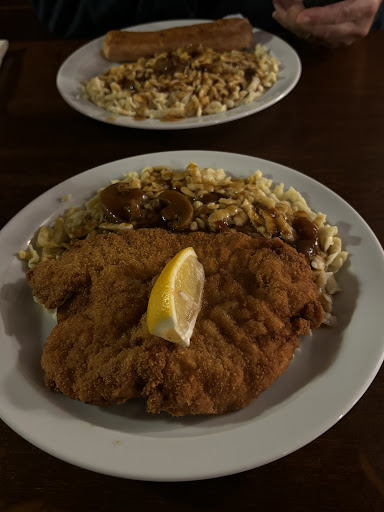 True German food, delicious! Service was super, and our waiter spoke enough English to explain dishes and make sure we got what we wanted. I had the chicken schnitzel with spatzel, and it was absolutely the best meal I have had in Germany. Hubby had the bratwurst with spatzel and throughly enjoyed it too. Glad we stopped...