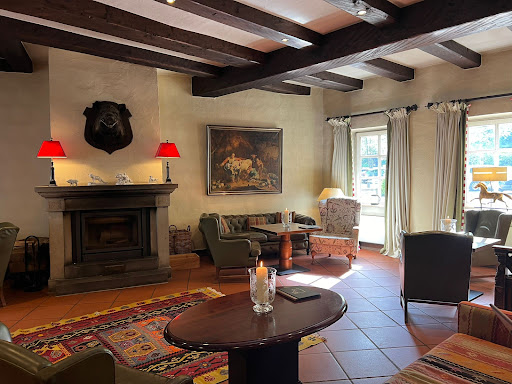 We stay at many R&C hotels and you always feel part of family and this was especially true here. Everyone was so friendly. Our room was lovely overlooking the equestrian ring. They really take care of their guests including their dog guests with a lovely bowl and a large beautiful dog bed. I loved that you could have a Nespresso coffee in your room early in the morning, followed by a lovely dog walk in their forest visiting the lovely castle ruins to which they give their guests access (ask for the keys at reception). Arriving hungry back at the hotel, their breakfast doesn’t disappoint - so many different choices of fish, cheeses and meats as well as spreads and jams. The hotel happily arranges a round of golf for you at the local well maintained golf course. In the afternoon, you can enjoy a complimentary coffee, tea, glass of wine or Prosecco in front of the fire before heading to dinner. Dinner and wines were great. My husband especially enjoyed their aged distillery spirits. The menu seems to have a long duration so if you are staying for several days you might ask them for nice local restaurant...