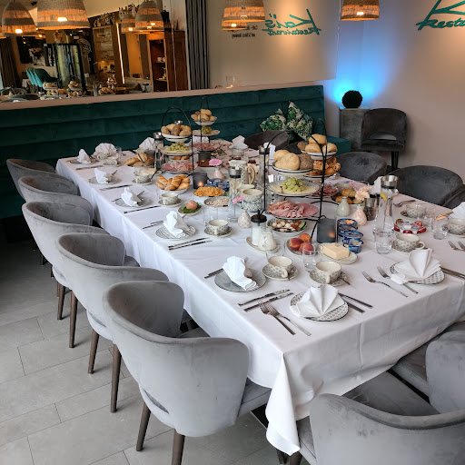 Read moreIch muss erst mal vorweg sagen, Kais Restaurant ist ein Bistro, dass vor allem Schloss Besucher und Wanderer eine Möglichkeit zur Einkehr gibt. Das heißt, es muss günstig und einfach sein. Deswegen ist die Speisekarte auch darauf ausgerichtet. Kulinarische Überflieger gibt es nicht. Aber Kinder und hungrige Wanderer werden glücklich sein. Erstmal, die Lage ist bombastisch. Man sitzt im Freien mit Blick auf die Burg. Die Getränke sind eiskalt und lecker (Aperol Spritz,Lillet,Cola und Bier), das Essen ist heiß und schmackhaft (Schweine Cordon bleu, Wiener Schnitzel mit Champignonsauce, Caesar salad),alles mit etwas Pfiff (Champignons frisch und würzig und separat serviert/Gurkensalat nicht in Sahnesauce oder süßem Fertigdressind ertränkt/Bratkartoffeln knusprig und mit buttrigem Geschmack), die Bedienungen waren motiviert und aufmerksam . Klar auch bei uns kam das Essen eher als das Besteck, aber das sind keine Fachkräfte. Im Zweifel geht man an die Theke und holt sich das Besteck halt^^ Wir hatten auf jeden Fall einen schönen Abend und werden bei der nächsten Wanderung sicher auch das Kuchenbüffet ausprobieren....denn der Espresso war ebenfalls...