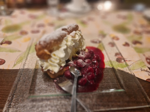 Beim Dessert dann leider ein Erlebnis, das ich nicht ganz glauben konnte. Ich bestellte mir das Eclair mit Vanilleeis, Sahne und Kirschen. Nach dem ersten Bissen schmeckte ich Alkohol. Auf der Karte war dieser nicht erwähnt, also fragten wir nach. Erst hieß es "Kann eigentlich nicht sein, wir verkaufen das ja auch an Kinder.", dann aber kam die Info, dass die Kirschen mit Amaretto gekocht wurden. Aber das Auskochen ließe den Alkohol ja verdampfen. Mir wird von Alkohol (vor allem Schnaps) und dem meisten nach Alkohol schmeckenden süßen Soßen übel, bis hin zum Erbrechen. Dies habe ich auch erwähnt. Ebenso, dass ich es dann nicht bestellt hätte, gerade weil es mit den Kirschen mehr kostete. Was soll ich sagen, hier der Unterschied zur 4 bis 5 Sterne Gastronomie: keine Frage, ob man mir etwas anderes anbieten könne. Ich wollte den Abend nicht ruinieren, also sagte ich, nach Ausbleibender Reaktion, dass es schon irgendwie ginge und so aß ich drum herum so gut es ging. Beim Abräumen durfte ich mir, nach Wiederholung des o.g. Dialogs dann sagen lassen, dass 'geholfen wird, wer fragt'. Tut mir leid, ich wusste nicht, dass der Kunde fragen muss, ob Alkohol im Obst des Desserts verkocht wird, wenn es doch normale heiße Kirschen sein sollten. Es gab noch einen Schokoladenkäfer zur Wiedergutmachung... Ich habe lange überlegt, diese Bewertung zu schreiben, weil wir im Sommer so gern dort sind und wir das Personal eigentlich sehr schätzen, aber die Enttäuschung überwiegt. Das zeigte sich dann auch im...
