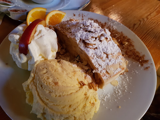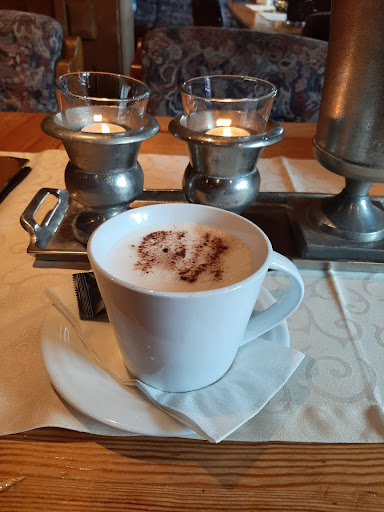 Ein Cafe das weit über die Region hinaus bekannt ist. Nicht nur weil die Torten ,Apfelstrudel, Windbeutel, Waffeln*( *-immer Donnerstags) lecker schmecken, nein , auch die Portionen sind im XXL Format und mit viel Liebe auf den Teller gebracht.Es geht aber auch deftig - selbst die berühmte Burgenplatte ist mit leckeren Wurst Spezialitäten der Region mehr als üppig ausgestattet, sogar mit einem Schnaps !! Kein Wunder das hier oft Busse vor der Tür stehen, dass Haus wirkt schon am Eingang sehr einladend und der Service ist sehr sehr freundlich. Die Innen Ausstattung ist eine wahre" Holz Kunst" vom Stuhl bis zur Decke sicherlich einmalig .Die Dekorationen möchte man am liebsten mitnehmen, gerade zu Weihnachten wunderschön. Es gibt einen unterteilten Hauptraum und noch weitere kleine und gemütliche Nebenräume.Das Cafe macht auf Anfrage auch leckere Menüs zu verschiedenen Anlässen außerhalb der Öffnungszeiten. PREIS/ LEISTUNG MEHR...