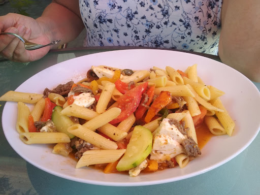 Wir bestellten trotz des unflätigen Benehmens Pasta und Pizza. Die Pizza war mäßig gut. In der Pasta, die sehr lecker schmeckte, fanden wir etwas nicht Definierbares. Dies bemerkte der Betreiber und kam wieder an unseren Tisch. Er fragte unfreundlich ob alles in Ordnung sei. Ich erklärte/zeigte ihm, erneut wirklich freundlich, was wir in den Nudeln entdeckt hatten. Dies wies er zurück: " ...ist vom Gemüse..."