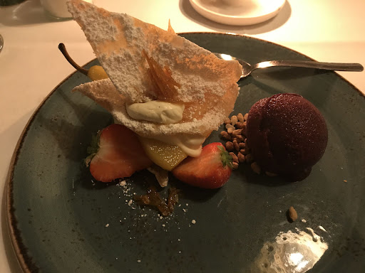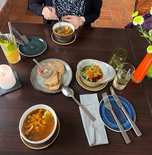 27.09.2024: Sehr freundliche Kellner, richtig gutes Essen aus frischen Zutaten und toll in den Kompositionen, gute Portionsgrößen. Das selbstgebackene Brot mit hauseigenem Aufstrich, die Vorspeise, der Fisch als auch das vegetarische Gericht waren sehr lecker. Wir hatten noch Kimchi aus Mangold - köstlich. Und das Dessert ebenfalls. Die Preise sind in Anbetracht der Qualität der Speisen gut. Nur das Restaurant selbst könnte hier und da ein wenig Auffrischung brauchen - aber das ist "kritisieren auf hohem Niveau". Wir waren sehr zufrieden und kommen mit Sicherheit wieder. Very friendly waiters, really good food made from fresh ingredients and great compositions, good portion sizes. The home-made bread with homemade spread, the starter, the fish and the vegetarian dish were very tasty. We also had kimchi made from chard - delicious. And the dessert too. The prices are good considering the quality of the food. Only the restaurant itself could use a little freshening up here and there - but that's "criticism at a high level". We were very satisfied and will...