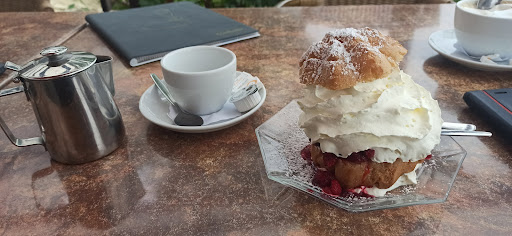 Sehr schöne Aussicht und gemütliche Terrasse . Am Eingang zur Terrasse stand ein Schild das man warten soll wegen der Platzierung. Vom sehr jungen Kellner (vielleicht Azubi) und der Kellnerin wurden wir erstmal gekonnt ignoriert und standen da einige Minuten herum bis ich mich nochmals mit einem lautem Hallo bemerkbar machte. nach weiteren Minuten kam dann endlich die Kellnerin und erlaubte uns einen der 3 noch freien Tische zu belegen .Wir hatten die Klingel übersehen die nachfolgende Gäste betätigten und von der Kellnerin dann eh als defekt bezeichnet wurde. Die Wartezeit auf Bestellung und Servieren lag im erträglichen Bereich , wir waren ja nicht auf der Flucht ;) Die Bedienung stellte sich nach anfänglichem Eindruck dann doch als ganz freundlich heraus. Ich denke in Anbetracht der schwierigen Zeit ist dies auch dem Personalmangel zu schulden. Ein Cappuccino für meine Frau ein eher kleines Kännchen Kaffee für mich , dazu ein Windbeutel mit Himbeeren für uns beide schlugen mit knapp 14,00€ zu Buche was eigentlich schon im Anbetracht der Menge und Qualität dem oberen Sektor zuzuordnen ist. Der Caffè war ein wenig fad dank dem Blechkännchen auch nicht mehr warm und den an sich sehr schön angerichtete Windbeutel mit offensichtlich preiswerter Sprühsahne hatte ich auch anders in Erinnerung . Die Himbeeren waren so sauer so das ich mich fragte ob von manchen Gastronomen selbst auch mal probiert wird was den Gästen aufgetischt wird. Ansonsten war es ein sehr schöner Ausflug in dem wir dann noch die Umliegenden...