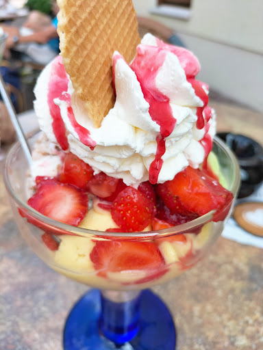 Eisschokolade lau warm, Erdbeeren aus der Tiefkühltruhe und Früchte beim sogenannten Früchtebecher aus der Dose ?! Die Eissorten schmecken sehr künstlich und nach Aroma, statt nach Frucht. Wir dachten das so etwas heutzutage nicht mehr möglich ist, aber hier schon... Dafür dann noch 7.90€ und 9.60€ ist schon fast frech.