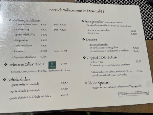 Read moreDas Café liegt wie schon der Name sagt, direkt an dem wunderschönen Dom von Naumburg. Von außen hat man das Gefühl, dass es hier rein touristisches Essen und Kuchen gibt. Sicher ist es auch so da diese Location direkt am Touristenmagnet dem Dom liegt. Allerdings ist die Qualität des Kuchens absolut in Ordnung. Der Kuchen schmeckt wie selbst gemacht und auch der Kaffee ist sehr gut. Das Ambiente ist zwar nicht modern aber sehr gemütlich. Im Sommer kann man sehr schön, mit Blick auf dem Dom, draußen sitzen. Das Preisleistungsverhältnis ist absolut in Ordnung. Der Service ist freundlich und flink. Parkplätze stehen in der Nähe kostenpflichtig zur Verfügung. Wenn euch die Rezession gefallen oder geholfen hat, dann freue ich mich über ein...