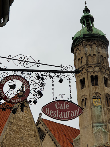 Eigentlich möchte ich das Café mit 0 Sternen bewetten, wenn das ginge, denn es war leider mehr als enttäuschend. Wir machten Pfingstsonntag eine Radttour durch das herrliche Saaletal und kamen mit dem 18-Uhr-Geläut des Domes am Domplatz bei schönster Abendsonne an ... und setzten uns an einen Tisch in der Sonne gegenüber dem Café mit Blick auf den Dom. Ein älteres Ehepaar wechselte bereits zu den schattigen Bereichen direkt vor dem Café, da die Servicekraft Ihnen sagte, dass sie die Bedienung dieser Fläche nicht mehr schaffe. Es waren ca 5 Tische und davon 2 mit je 2 Personen besetzt! Als die Kellnerin zu uns kam, wurde uns, bevor wir etwas sagen konnten, mitgeteilt, dass es jetzt keine Küche mehr gäbe und sie uns auch nicht mehr hier bedienen könne. Nur noch im Schatten. Auf die Mitteilung, dass wir nur einen Wein (aus der Region) wollten, wurde uns auch das verwehrt. Sie bekäme sonst Ärger mit ihrem Chef. Pfingstsonntag in Sachsen-Anhalt! Ein Trauerspiel! Wir aßen dann stattdessen sehr schön in der Nähe in Schönburg.