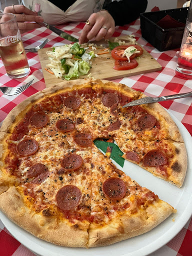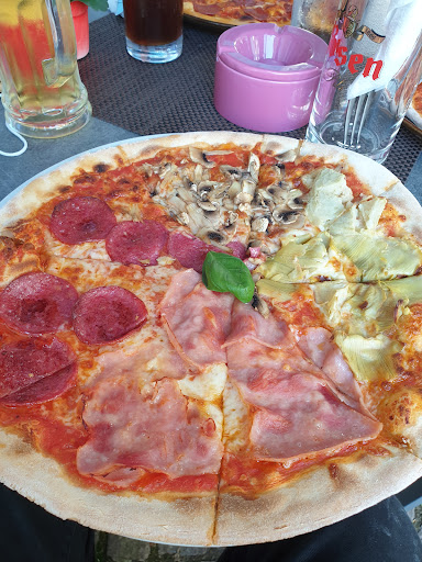 Read morePizza war lecker. Wir haben vor Ort gegessen. Bestellung hat auch nicht lange gedauert. Vorteil: Zwei Größen bestellbar. Der Preis insgesamt top. Ruhig gelegen in einer Fußgängerzone. Pizza ist am Rand sehr kross und der Boden sehr dünn, so wie es der richtige Italiener macht. Ist nicht jedermann Sache und das die Pizza bei Lieferung kalt ist, kein Wunder. Pizza wirklich vom Steinboden und nicht aus dem Blech Tip, einfach mal vor Ort essen. Kommen gerne wieder. Die Rechnung hat leider etwas gedauert. Drei Personen mit Getränke 31,- kann man nicht meckern. Bild, Pizza 4 Stagioni, paßt noch nicht einmal...