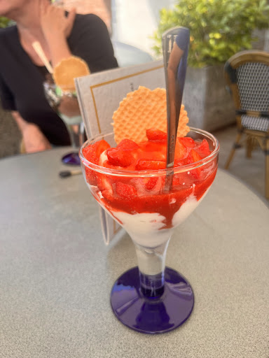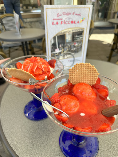 Read moreDas, was wir von unserem Eis noch essen statt trinken konnten nachdem wir einen Platz gefunden hatten war wirklich sehr gut. Leider wurden wir mit unseren Rädern verscheucht, welche wir an den Blumenkübeln abgestellt hatten. Begründung: Es handele sich um einen Laufweg. Diese Blumenkübel standen so dicht beeinander, dass an der Stelle kein Rollstuhl oder Rollator vom Gehweg auf den Vorplatz des Eiscafe's hätte wechseln können ... es kann sich also nicht wirklich um einen Laufweg gehandelt haben. Als Radfahrer werde ich mein Eis in Zukunft dann doch woanders kaufen, zumal die Portionsgröße in meinem Becher dann doch sehr...