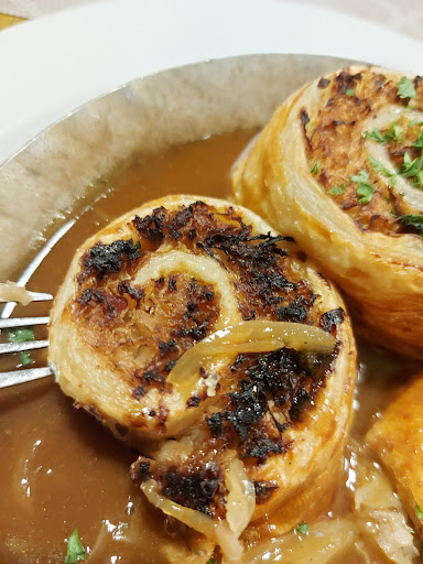 Read moreEin Stern, weil man keine Null Sterne vergeben kann. Zum Ambiente: Die Gardinchen waren hübsch. Wir hatten uns einen Eckplatz ausgesucht, weil wir dann beide auf der Bank sitzen konnten. Die Sitzbank war so geformt, dass ich gleich nach hinten gekippt bin. Grds. nicht schlimm, wenn ich da nicht die Fensterbank im Rücken gehabt hätte. Also hab ich mich umgesetzt und hatte fortan ein hübsch angeleuchtetes Spinnweben in der Ecke vor Augen. Laut meinem Mann war die Toilette uralt - was nicht schlimm wäre, wenn er nicht auch noch am Boden kleben geblieben wäre. Nicht so prickelnd. Ich hätte gerne eine kleine Portion Krautkrapfen gehabt. Die Kellnerin (Chefin?): "Das geht nicht. Das sind immer 3 Stücke. Das ist nicht zu viel." Warum kann man statt 3 Stücken keine 2 Stücke machen? Woher weiß die Küche/Bedienung, was für mich zu viel ist? Spätestens als dann einer der Krapfen völlig angebrannt war, hätte man relativ unkompliziert, diesen entsorgen und mir sagen können, dass die Küche die kleine Portion doch möglich gemacht hat - statt den angebrannten unter einem anderen Krapfen zu verstecken. Als ob man das nicht merken würde... Und ja die Küche hat es sicher gemerkt, denn am Nachbartisch wurden die 3 Krapfen nebeneinander im Pfännchen angerichtet gebracht. Die Haxe war die schlechteste, die mein Mann je gegessen hat. Total totgebraten klebten Fleisch, Fett und "Kruste" am Knochen. Mit dem Knödel hätte man vermutlich besser Tennis spielen können. Unter dem Druck des Messers, lies er sich bis zur Mitte biegen und ging flugs in die Ursprungsform zurück. Nach dem Außenandersägen sah er aus als wäre er tiefgefroren und mit Gefrierbrand wieder aufgetaut worden. Ein Nachschub-Bier gab es nach kurzer Wartezeit und aktivem Nachhaken. Wie es uns geschmeckt hat, hat niemand gefragt. Weder während des Essens, noch beim Abräumen, noch beim Rechnung anfordern (wieder aktiv, weil niemand mehr zu unserem Tisch kam), noch beim Rechnung auf den Tisch legen (und sofort wieder mit dem Hinweis "einen Moment bitte" weiterlaufen), noch beim Kassieren (wo wir natürlich kein Trinkgeld gegeben haben). Mein Mann hat dann zumindest noch in die Küche (direkt neben uns mit offenstehender Tür und an der Wand angelehnten, ratschenden Mitarbeitern) geguckt und sein Feedback zur Haxe gegeben. Zumindest ein junger Mann wollte dann wissen, was nicht gepasst hat. Ansonsten nur irritierte Blicke.