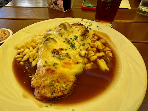 Read moreVorab: wir sind als Ehepaar durchaus gastronomisch erfahren und erwarten einen gewissen Standard. Chronologischer Ablauf unserer heutigen Erfahrung: wir haben 15 Minuten nach Ankunft in dem zu 3/4 gefüllten Biergarten unsere Getränkebestellung aufgeben dürfen. Drei Angestellte haben in Arbeitsteilung die Bestellungen aufgenommen und serviert. Nach weiteren 15 Minuten wollte der Mitarbeiter unsere Essensbestellung aufnehmen - ihm fiel sofort auf, dass die Getränke nicht gekommen sind. Unsere Essensbestellung wurde elektronisch aufgenommen und er entschuldigte sich für die fehlenden Getränke. Ein Bier und ein Wein wurden dann kommentarlos ca. 5 Minuten später an den Tisch gebracht. Nun hatten wir weitere 30 Minuten Zeit, dem sich leerenden Biergarten zuzusehen, denn das erste der beiden bestellten Speisen kam ziemlich genau 45 Minuten nach Bestellung. Die Käsespinatknödel sind weder kompliziert noch aufwändig, insofern dachten wir die auch bestellte Försterpfanne kommt dann auch gleich. Ein Irrglaube. Da die Knödel nicht kalt werden sollten und das Personal nicht mehr greifbar war, wurde diese Speise langsam und bedächtig in einem Zeitraum von 10 Minuten langsam gegessen. Handwerklich okay, keine besondere Meisterleistung. Nur die Försterpfanne kam auch nach insgesamt 60 Minuten nicht, das erste Gericht war bereits inkl. Salat vollständig verspeist. Wir haben die Bedienung gebeten das zweite Essen - welches offenbar vergessen wurde - zu streichen und die Rechnung angefordert. Es wurde sich mündlich entschuldigt, dass das gemeinschaftlich bestellte Essen auch mit einer 30 minütigen Verzögerung (gemessen am ersten Essen) nicht gekommen ist. Es sei (angeblich) gerade eben angerichtet worden, was uns aber eher als Ausrede vorgekommen ist. Statt einer Entschuldigung wurde der volle Preis der beiden servierten Getränke und des einen Essens verlangt. Natürlich ist das vollkommen rechtens, aber kundenfreundlich wäre es gewesen, das Getränk der nun ohne Essen da stehenden Person aufs Haus gehen zu lassen. Zusammenfassung: Dienstag nach Ostern, kein übermäßiger Andrang, eher „normal“, da keine Hochsaison. 15 Minuten Wartezeit, Getränke 35 Minuten nach Ankunft (20 Minuten nach Bestellung für ein Bier und ein Glas Wein), erstes Essen ca. 60 Minuten nach Ankunft (netto 45 Minuten für 2 Knödel in Sauce überbacken), zweites Essen komplett vergessen, nach ca. 70 Minuten (netto ca 55 Minuten) abbestellt. Volle Berechnung der gelieferten Getränke und des Essens ohne...