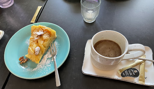Read moreAuf der Durchreise dachten wir noch Mal schön essen zu gehen. Das Café ist klein aber fein. Die Bedienungen sehr freundlich. Leider haben wir den Fehler gemacht und das Rührei genommen. 2,50€ Aufpreis für Rührei mit Käse - der Käse war super aromatisch und passte gar nicht zum Ei, leider war dieser ins Ei gemischt und nicht wie ich dachte neben dran. Das Ei konnte man nicht mehr schmecken und wurde dadurch nicht wirklich genießbar - eher im Gegenteil. Leider wirklich übel für meinen Magen. Auch das Rührei mit Kochschinken zum selben Aufpreis war eine angebraten Scheibe Schinken die unter dem Rührei lag - die Kräuter, wie sie in der Karte benannt wurden bestanden aus zwei Blättern Pflücksalat und einem Stängel Petersilie. Der Kaffee war aber gut. Die Toilette war groß und hell, leider auch nicht sehr sauber, da noch Schamhaare am Urinal klebten (eine Toilette für alle). Sehr schade alles - zumal der Kuchen wirklich gut aussah und ich es im Nachhinein wirklich bereue, nicht diesen...