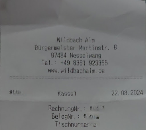 Read moreSeit vielen Jahren sind wir immer wieder Gäste im Feriendorf. Die letzten Male waren wir sehr begeistert von der Wildbachalm. Inzwischen hat der Betreiber gewechselt und wir waren zum letzten Mal dort. Das Ambiente ist nach wie vor toll, aber der Rest passt nicht mehr. Die Karte ist sehr reduziert und ich würde auch sagen etwas „wild“. Keine klare Richtung erkennbar. Zur Vorspeise bestellten wir unter anderem Flädlesuppe, die wir leider stehen lassen mussten, so schlecht war sie. Sowohl Flädle als auch Croutons waren so weich, dass sie direkt beim in den Mund nehmen zerfielen. Die Brühe war ziemlich geschmacklos. Die Käsesuppe war wohl ganz okay. Was gar nicht ging- 2 Minuten nach Eintreffen der Vorspeisen wurde uns plötzlich schon das Hauptgericht serviert. Noch nicht einmal die Hälfte hatten wir geschafft. Auf einen freundlichen Hinweis, dass wir noch bei der Vorspeise sind, kam nur „Ist halt eine schnelle Küche“ und so wurde alles abgestellt. Die Hauptgerichte waren insgesamt okay (Schnitzel, Cevapcici, Ofenkartoffel). Allerdings möchte man in einem Restaurant eigentlich keine Soßenbinderklumpen in der Soße finden. Fazit also insgesamt- okay. Man wird satt, aber nochmal kommt man sicher nicht. Preis-Leistung ist auch eher schlecht, wenn man vergleicht wie gut die Küche in anderen Lokalen rund um Nesselwang ist. Auch die Getränke waren am teuersten, verglichen mit anderen besuchten...