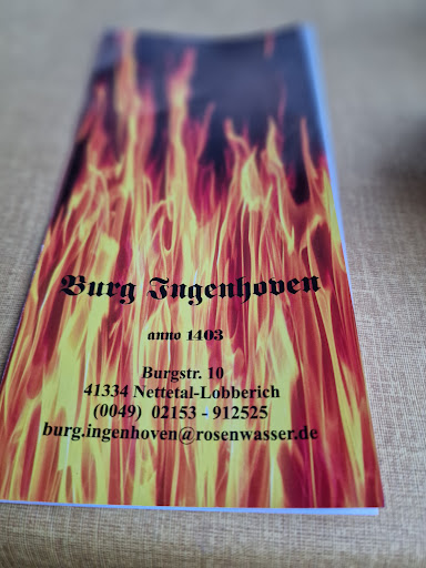 Read moreWir haben anlässlich einer Konfirmation mit einer Gesellschaft von 20 Leuten die Burg Ingenhoven besucht. Das Menü wurde vorab von uns persönlich ausgewählt und um individuelle Wünsche ergänzt, welche alle ohne Umstände berücksichtigt wurden. Der Burgbesuch begann mit einem Sektempfang, begleitet durch einige Canapés wie Carpaccio oder Ziegenkäse mit Basilikumopesto, elegant angerichtet auf mundgerechten Löffeln. Diese haben alle Gäste durch ihre Kreativität und ausgefallenen Geschmack hellauf begeistert. Auch das Ambiente des Restaurants begeisterte durch seinen charmanten und exquisiten Charme. Das Menü wurde in einem glanzvollen und detailiert hergerichteten Festzimmer vom stets zuvorkommenden aber nie aufdringlichen Personal angerichtet. Die Gänge folgten zeitgerecht und zur Zufriedenheit aller ohne unangenehme Wartezeiten aufeinander, wobei gerade der Hauptgang, bestehend aus Spargel, frischen Kartoffeln sowie Roastbeef lobend hervorgehoben werden konnte. Auch die liebevoll dargereichten Dessertvariationen stießen auf große Zustimmung, Nachservice stellte für die erfahrenen Kellner keinerlei Probleme dar. Besonders auf die Wünsche der anwesenden Kinder wurde intensiv eingegangen. Abgerundet wurde das exzellente Dinner durch eine eigens durch die Chefin angefertigte Erdbeertorte, welche den ohnehin stimmungsvollen Abend noch perfektionieren konnte. Allgemein ließ die Küche, sowie der tolle Service keine kulinarischen und persönlichen Wünsche offen und trug somit entscheidend zu unserem gelungenen Fest bei. Die Burg Ingenhoven ist allen Freunden guten Essens und geschmackvollen Ambientes wärmstens...