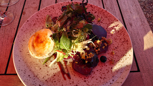 Read moreWaren heute zum ersten und bestimmt nicht letzten Mal hier. Anlässlich des Valentinstages haben wir uns dieses Restaurant ausgesucht. Es liegt mitten im Grünen. In direkter Nachbarschaft befindet sich ein Reitstall. Bei unserer Ankunft konnte man das auch mit der Nase wahrnehmen. Wie das im Sommer ist, wenn man auf der Terrasse sitzt bleibt noch zu testen. Wir hatten einen Tisch reserviert, was sich als sinnvoll erwies, das das Restaurant sehr gut besucht war. Wir wurden direkt freundlich in Empfang genommen und zu unserem Tisch geführt. Dieser war mit einem Stoffläufer und Stoffservietten!! nett eingedeckt. Auf die Frage nach Getränken bestellten wir zwei Gläser Champagner, leider stellte sich danach heraus, dass es dieses nicht im offenen Ausschank gab. Das hätte man auch direkt bei der Bestellung sagen können. Der Gastraum ist in zwei Bereiche aufgeteilt, ein unterer, in dem wir saßen, und ein oberer. Für unser Gefühl ist der untere Bereich der schönere. Aber das ist sicherlich Geschmackssache. Es gab zu diesem Tage ein spezielles „Valentins Menu“ das wir auch bestellten. Dieses setzte sich wie folgt zusammen: Austern an Orangen-Fenchelsalat, Kalbsrückensteak an Schwarzbrot-Kruste oder Rotbarsch an Rote Bete-Schaum mit Trüffelpüree und Salat zum Dessert Cocoskuchen an Schokoladeneis. Madam wollte statt der Austern lieber aus der Karte das Carpaccio vom Hirsch mit Feldsalat und Cumberlandsauce und dann den Rotbarsch, ich wählte das Kalbsrückensteak. Die Weinbegleitung bestand aus einem Grau Burgunder sowie auf der Rotweinseite ein nicht näher bezeichneter Rotwein, ich tippe auf einen Carbernet Sauvignon. Brot sowie ein Schnittlauchdip und Butter standen bereits auf dem Tisch. Nach angenehmer Wartezeit wurde dann auch die Vorspeise serviert. Das Carpaccio von Madam erwies sich als ca. 100g schweres Hirschsteak mit zweierlei Dip. Das Steak war auf den Punkt gebraten, ein echter Traum, die leichte Limonen Mayonnaise absolut perfekt. Madam war hin und weg. Meine Austern waren ebenfalls sehr gut, wobei man hier ja auch nicht viel falsch machen kann. Bei Salate waren wohl hausgemacht und schmackhaft. Das schürte die Erwartungshaltung für den Hauptgang es richtig an. Dieser wurde dann auch zügig nach abräumen der Vorspeise serviert. Das Rotbarschfilet von Madam hatte leider einige Gräten, das darf an sich nicht passieren, war wie Sie betonte sehr lecker, aber leider war das Trüffelpüree viel zu fest, schon fast Kartoffelstampf, das fehlt Butter und ein Schuss Milch, schade. Mein Kalbsrückensteak war auf den Punkt gebraten sehr schmackhaft. Ich konnte wirklich nicht aussetzten. Bei abräumen den Hauptspeisen wurde wir gefragt, ob wir eine Pause einlegen wollten, sehr zuvorkommend. Wir bejahten dieses um dem Magen eine kurze Pause zu gönnen. Wir nutzen die Zeit um einen Blick in Weinkarte zu werfen. Von jeden als auch für jeden Geschmack etwas dabei sowohl von Namhaften Winzern als auch aus den wichtigsten Ländern. Die Preise durchaus moderat. Dann kam das Dessert, das uns leider sehr enttäuschte. Das in einem doch schon als gehoben zu bezeichnenden Restaurant „Sprühsahne“ verwendet wird ist ein wirklicher Fauxpas, denn einen Espuma gibt es bestimmt auch in dieser Küche. Wirklich schade. Nichts desto trotz, waren wir wirklich sehr zufrieden und auch die 98.- Euronen waren für die Qualität durchaus angemessen. Wir kommen auf jeden...