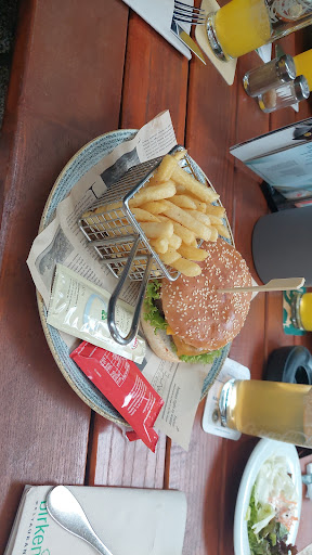 Mein Filetsteak war etwas besser, weil das Fleisch mehr Geschmack hatte und nicht komplett durch gebraten wurde, dazu sollten gebratene Zwiebeln und Champions mit serviert werden. Die Zwiebeln waren verbrannt und es war vielleicht ein Championgnon in dem "Haufen" zu finden. 30 Eur, jeder Cent zu viel und auch noch kalte Pommes zu dem feinen Filetsteak.
