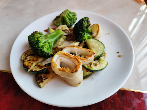 Read moreDas Personal ist sehr nett gewesen. Wir waren recht früh da, weshalb noch nicht viel los war, dementsprechend waren die Getränke schnell da und das Geschirr wurde gleich abgeräumt. Das Buffet hat eine recht große Auswahl an Salaten und Gemüse für Vegetarier, aber auch für Liebhaber von Fisch und Fleisch ist viel dabei. Das Gemüse zb die Gurken waren eindeutig nicht mehr frisch und schon sehr ausgetrocknet und verschrumpelt. Die Teller sind schon recht abgenutzt und nicht ganz so sauber. Fleisch und Fisch für den Grill liegt auf Eis und ist ebenso wie das Sushi abgedeckt, über anderen Gerichten fliegen allerdings schon zum Teil kleine Fruchtfliegen herum. Sie haben eine große Auswahl an Saucen und ähnlichem. An sich war das Essen sehr gut. Ich habe mich überwiegend am Grill bedient. Beim ersten mal nur Fisch nach Wahl, welcher sehr gut zubereitet wurde und geschmackvoll war, obwohl ich keine Sauce gewählt hatte. Beim zweiten mal habe ich das Gemüse mit entdeckt. Das Gemüse wurde einwandfrei zubereitet, hatte noch einen leichten Biss und sanfte Röstaromen.